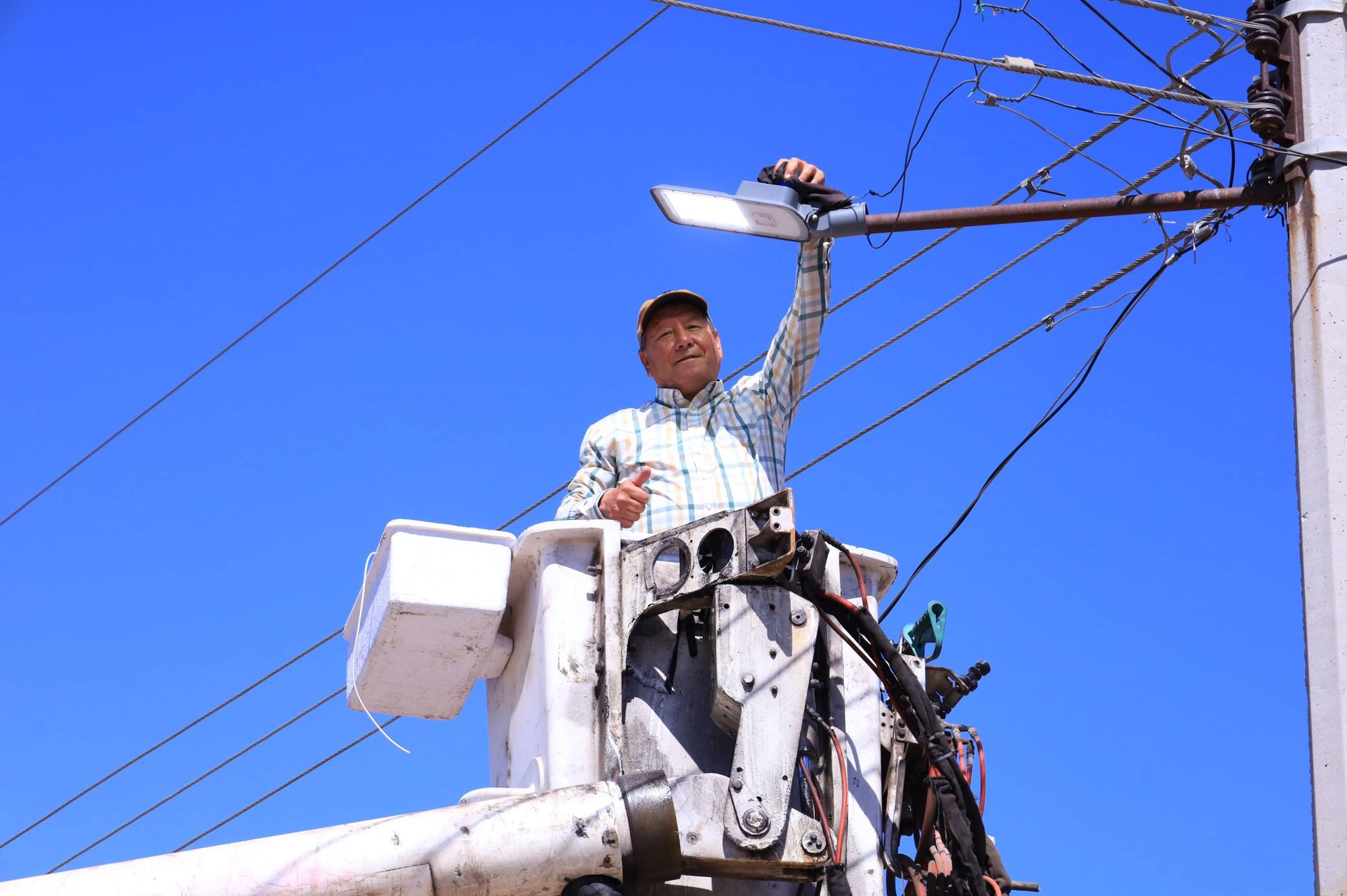 Durante el recorrido, el presidente municipal destacó por su cercanía con la gente al participar directamente en los trabajos, incluso subiendo a la grúa para apoyar en la colocación de algunas luminarias, reafirmando su compromiso de trabajar en territorio y atender de manera directa las necesidades de la población.
